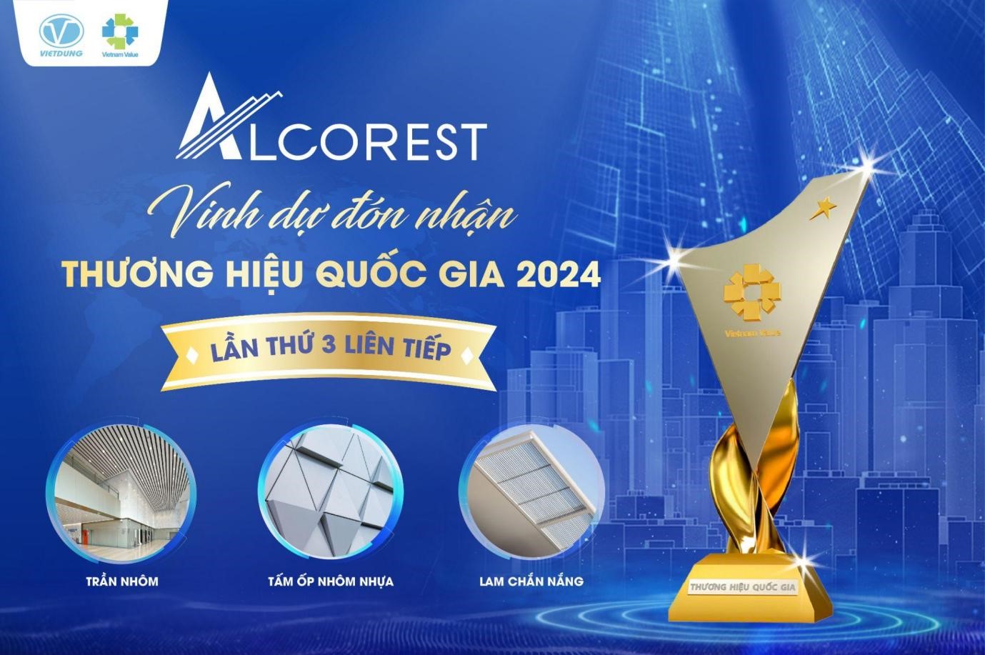 Sau hơn 9 tháng phát động và triển khai xét chọn, vượt qua hơn 1.000 thương hiệu đăng ký, thương hiệu Alcorest - thuộc Công ty cổ phần Nhôm Việt Dũng đã được xét chọn trong 359 sản phẩm đến từ 190 doanh nghiệp đạt “Thương hiệu Quốc gia 2024”. Đặc biệt, Alcorest là một trong số ít các thương hiệu vật liệu hoàn thiện được công nhận 3 lần liên tiếp (2020 - 2022 - 2024).