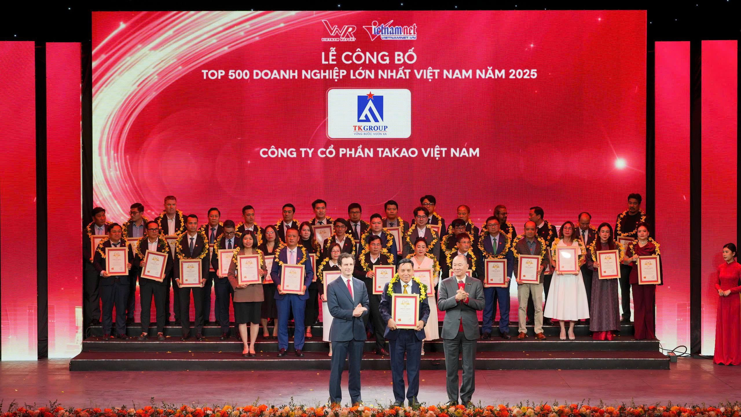 Trước khi ghi dấu ấn tại VNR500, cũng trong năm 2025, Takao đã được ghi nhận qua nhiều giải thưởng và bảng xếp hạng uy tín trong nước và quốc tế, với những dấu ấn nổi bật như Top 5 Công ty Vật liệu xây dựng uy tín và FAST500 - Top 500 Doanh nghiệp tăng trưởng nhanh nhất Việt Nam. Không chỉ dừng lại ở thành tích doanh nghiệp, ông Trần Ngọc Hưng - Chủ tịch HĐQT Công ty CP Takao cũng được trao tặng danh hiệu “Doanh nhân xuất sắc Châu Á” trong khuôn khổ Giải thưởng Doanh nghiệp Châu Á (Asia Pacific Enterprise Awards - APEA) 2025 do Enterprise Asia tổ chức. Việc góp mặt tại VNR500 năm 2025 tiếp tục hoàn thiện bức tranh về một Takao tăng trưởng mạnh mẽ về quy mô, vững vàng về nội lực và bền bỉ về chiến lược.