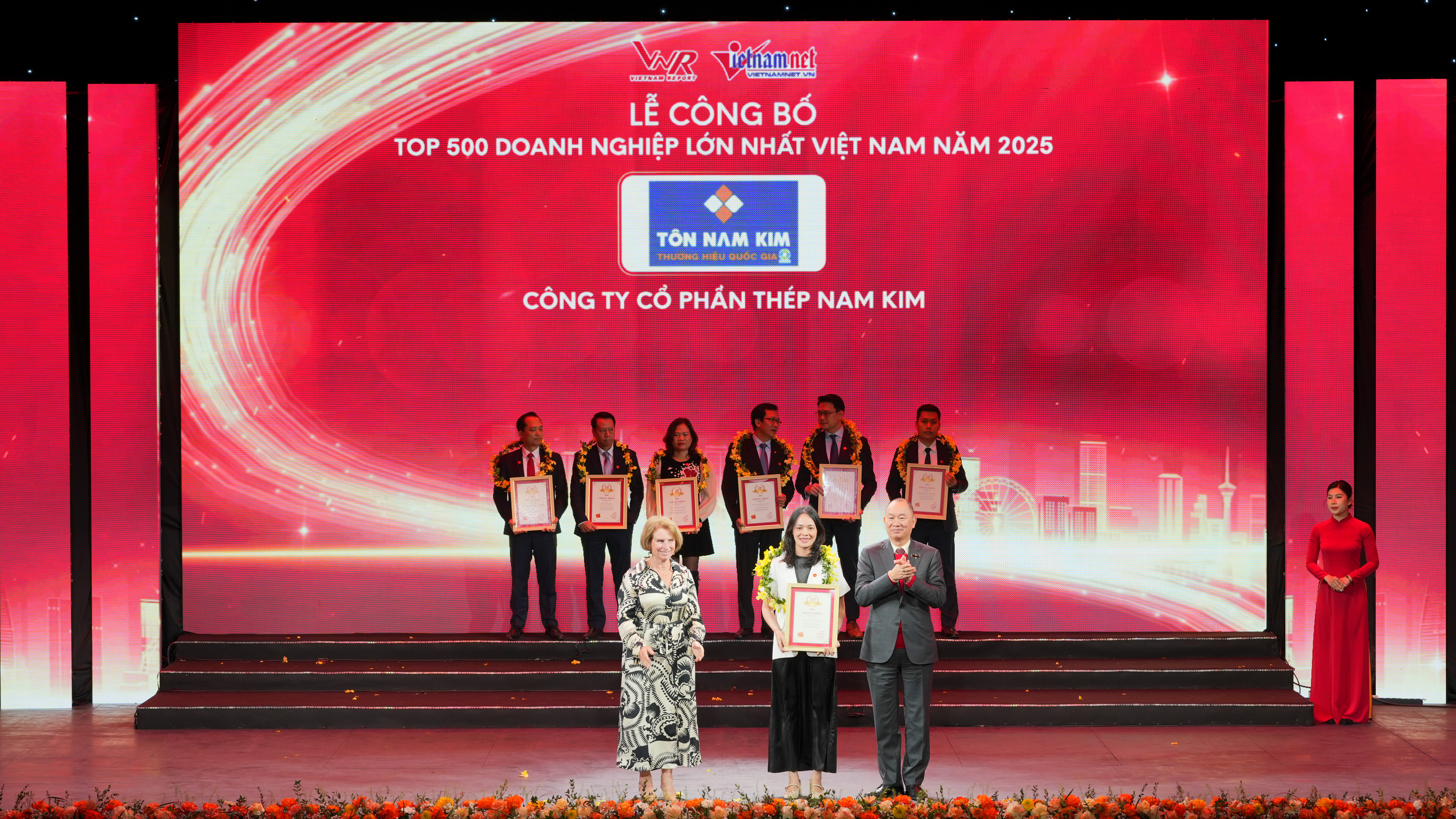 Chiều ngày 8/1/2026, đại diện Tôn Nam Kim vừa tham dự Lễ vinh danh Top 500 Doanh nghiệp lớn nhất Việt Nam (VNR500) năm 2025, tiếp tục khẳng định vị thế vững chắc đầu ngành trên thị trường vật liệu xây dựng.